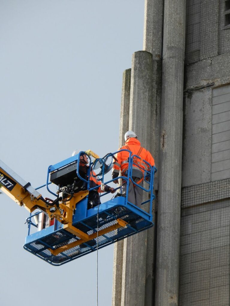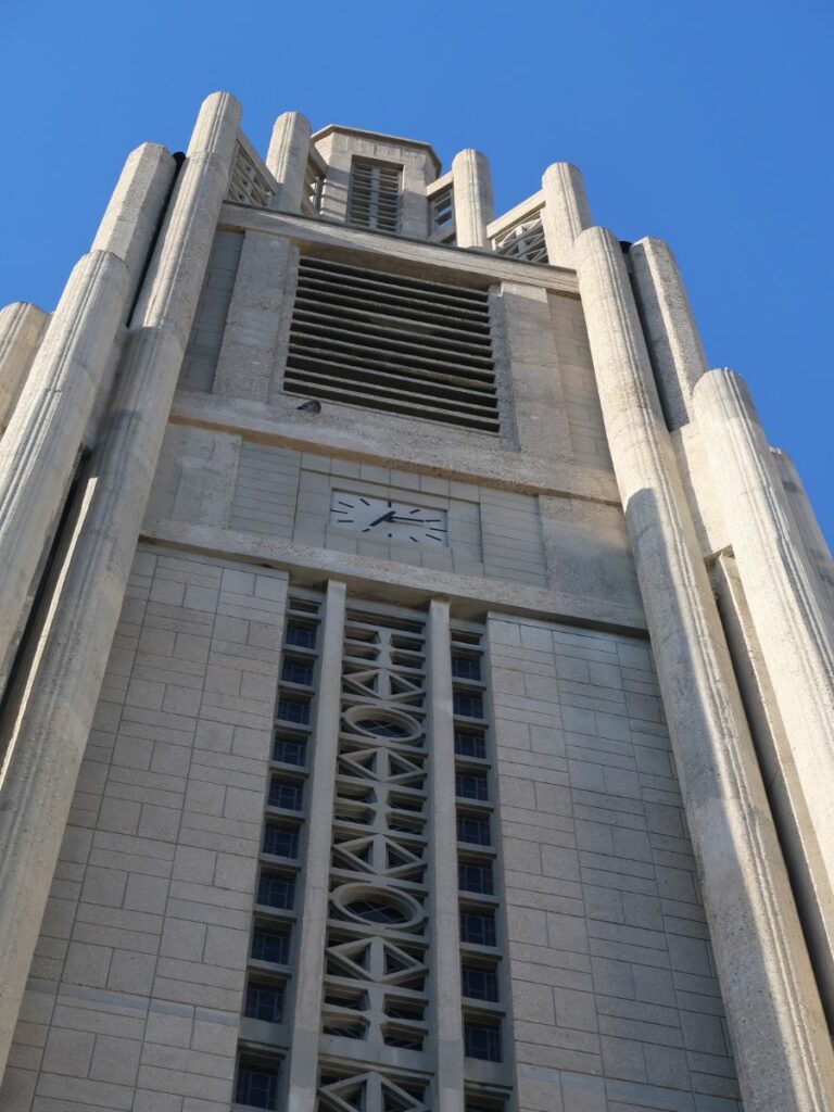 Les interventions sur le gros œuvre ont consisté à consolider les armatures et les poutres intérieures du clocher, puis à nettoyer et restaurer le béton avec un soin particulier porté à la conservation de la matière d’origine. Ce travail délicat a nécessité l’intervention d’artisans spécialisés dans la conservation du béton. L’étanchéité des terrasses a été entièrement rénovée, assurant ainsi la pérennité de l’édifice.